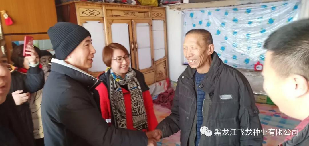 1月20日,工商聯(lián)齊海波書(shū)記、各村屯領(lǐng)導(dǎo)、飛龍種業(yè)林志達(dá)總經(jīng)理以及員工們逐一深入到福利鎮(zhèn)、集賢鎮(zhèn)、永安鄉(xiāng)、腰屯鄉(xiāng)李福臣、王喜軍、呂海濱等11戶群眾家中,把春節(jié)的禮物送給他們,讓他們從心里受到全社會(huì)對(duì)困難群眾的關(guān)愛(ài)之情。除了米面油、水果、醬油醋、深海刀魚(yú)和瓜子花生糖果等生活必需品以外,還根據(jù)不同需求送去了炕席、刮胡刀、藥品、衣物等。